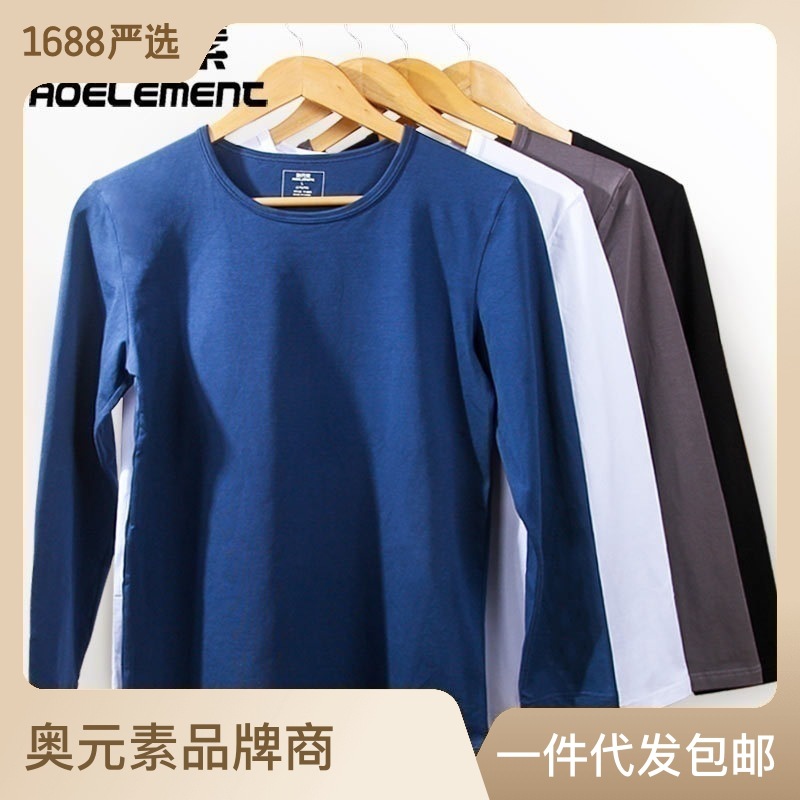 薄いタイプの男性の丸首の底のシャツの家庭のカジュアルな長袖の上着の純色の頭のtシャツの綿の質の夏のエアコンの服