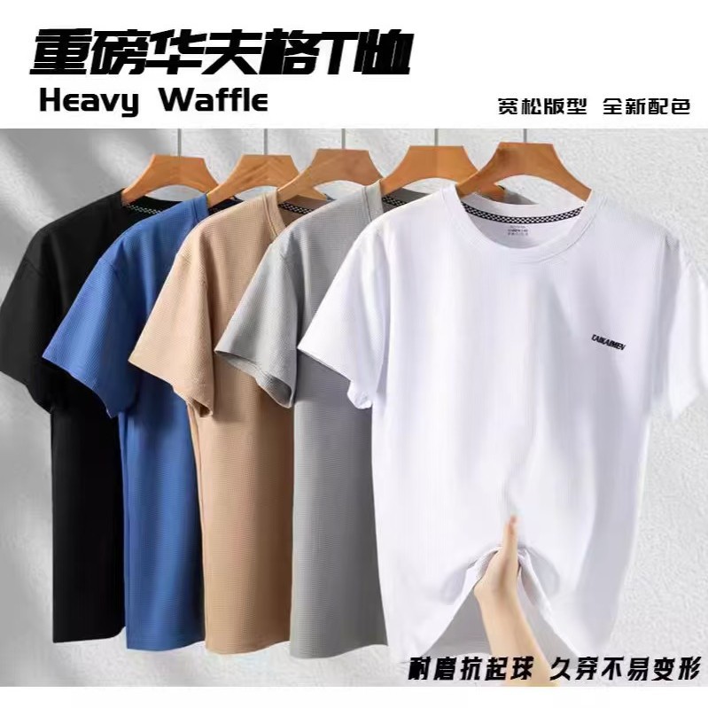 2025 夏メンズワッフル半袖ルーズカジュアル無地 Tシャツ半袖薄氷トップ卸売ゼロ
