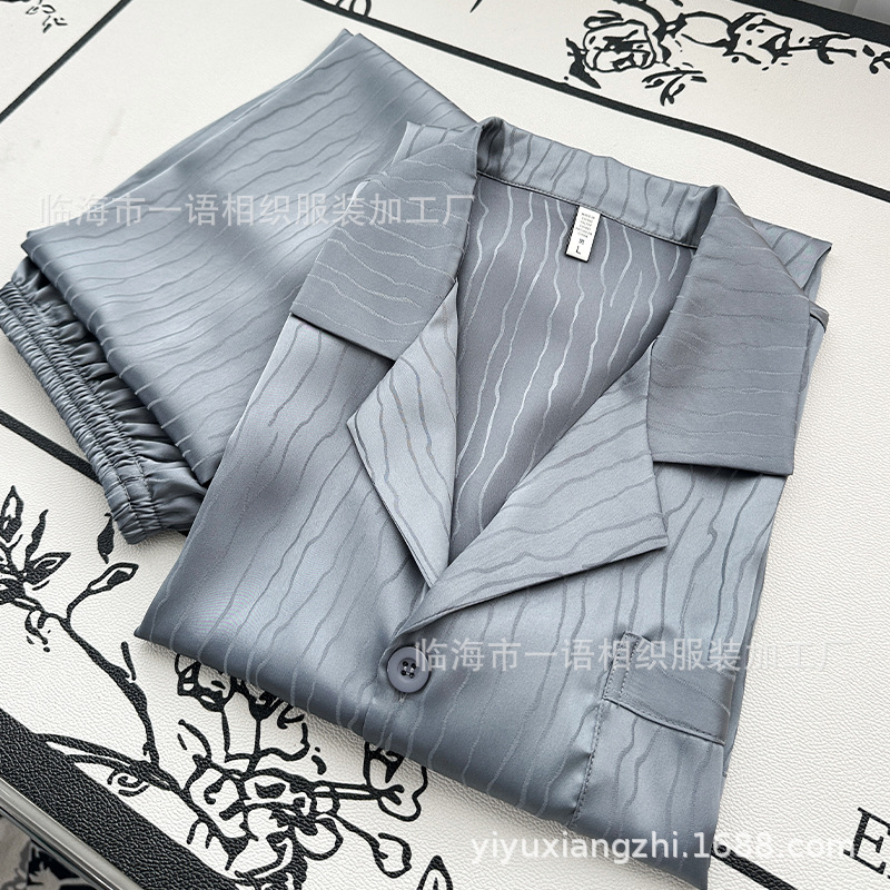 源工場の商品2023秋の新型パジャマ男氷糸代発振音網紅格子ジャカード家服