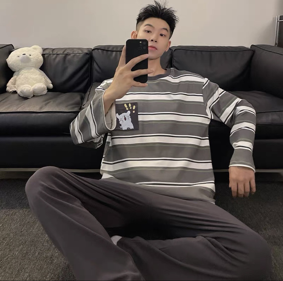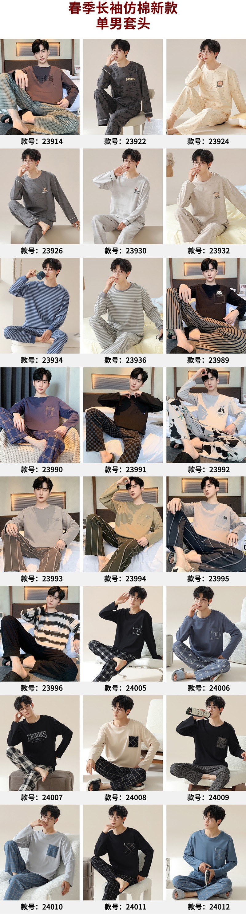 2025新型パジャマ男性春秋雲綿長袖長ズボン夏青少年男子家庭服セット