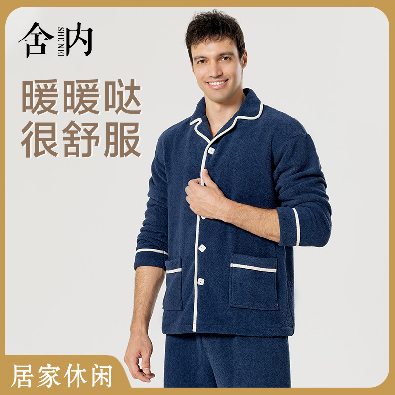 2025 パジャマメンズ秋冬厚手クラス A オールインワンベルベットラペルホームウェアラブルパジャマメンズホームウェアセット