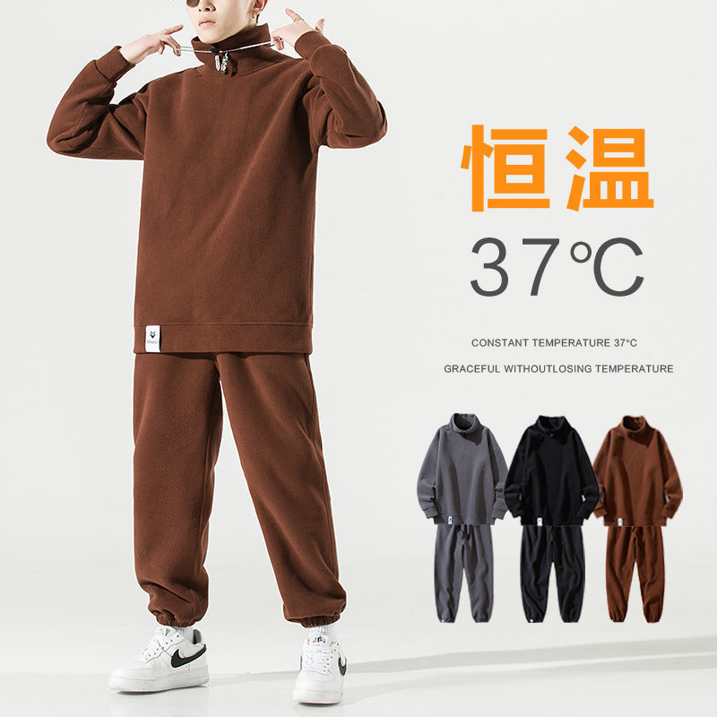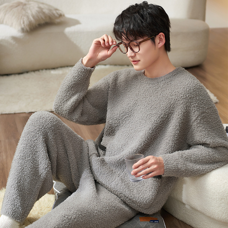 秋冬の新型のフリースとベルベットのルームウェア男性保温長袖パジャマセットはカジュアルスーツを着ることができる