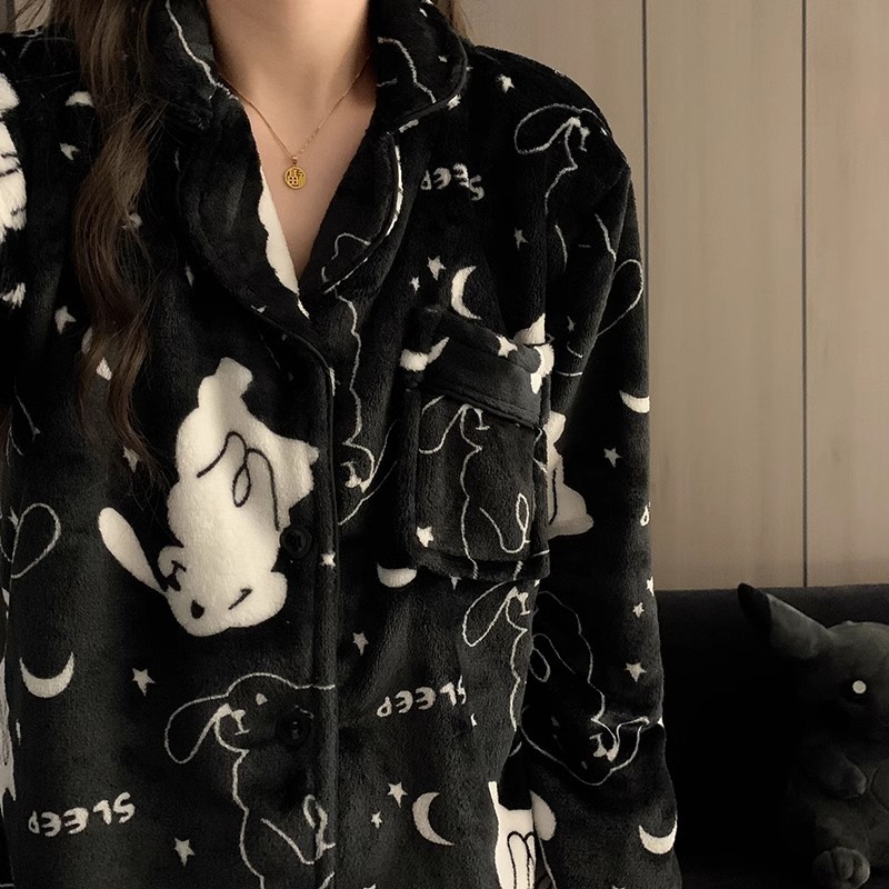 2024新型白兎漫画男性大サイズパジャマサンゴベルベット秋冬にベルベットの家庭服を厚くする