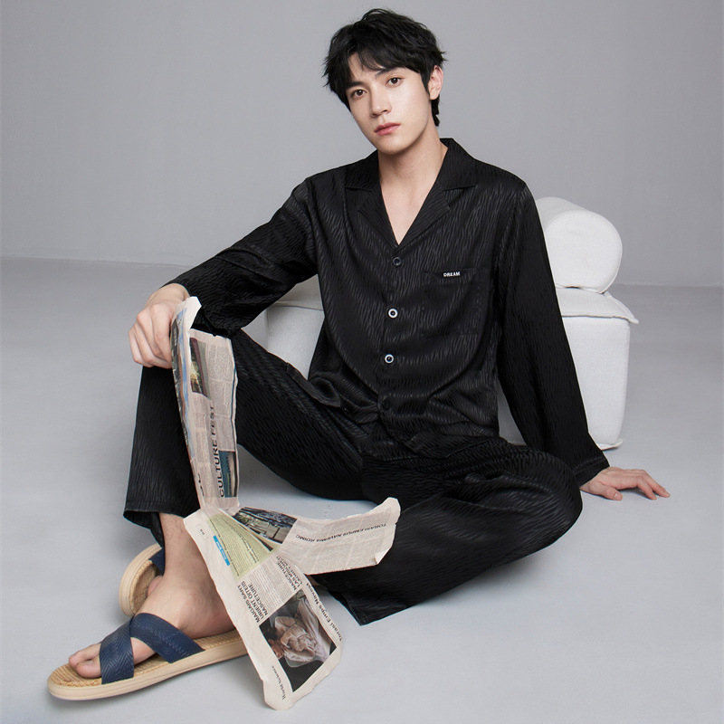 【大きいサイズ】2024春新作パジャマメンズ長袖薄手アイス高級感ジャカード大きいサイズホームウェア