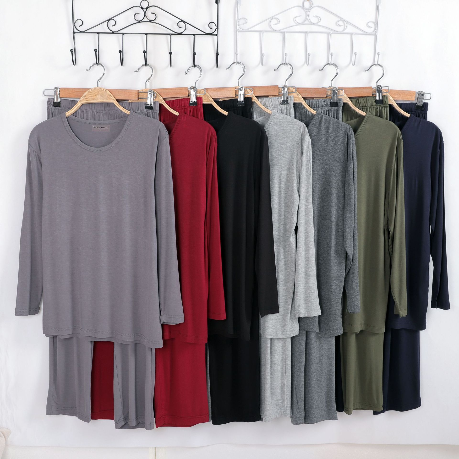 モーダル男性長袖ズボン夏の薄いエアコンセットに太った大きいサイズのボトムtシャツの部屋着パジャマ