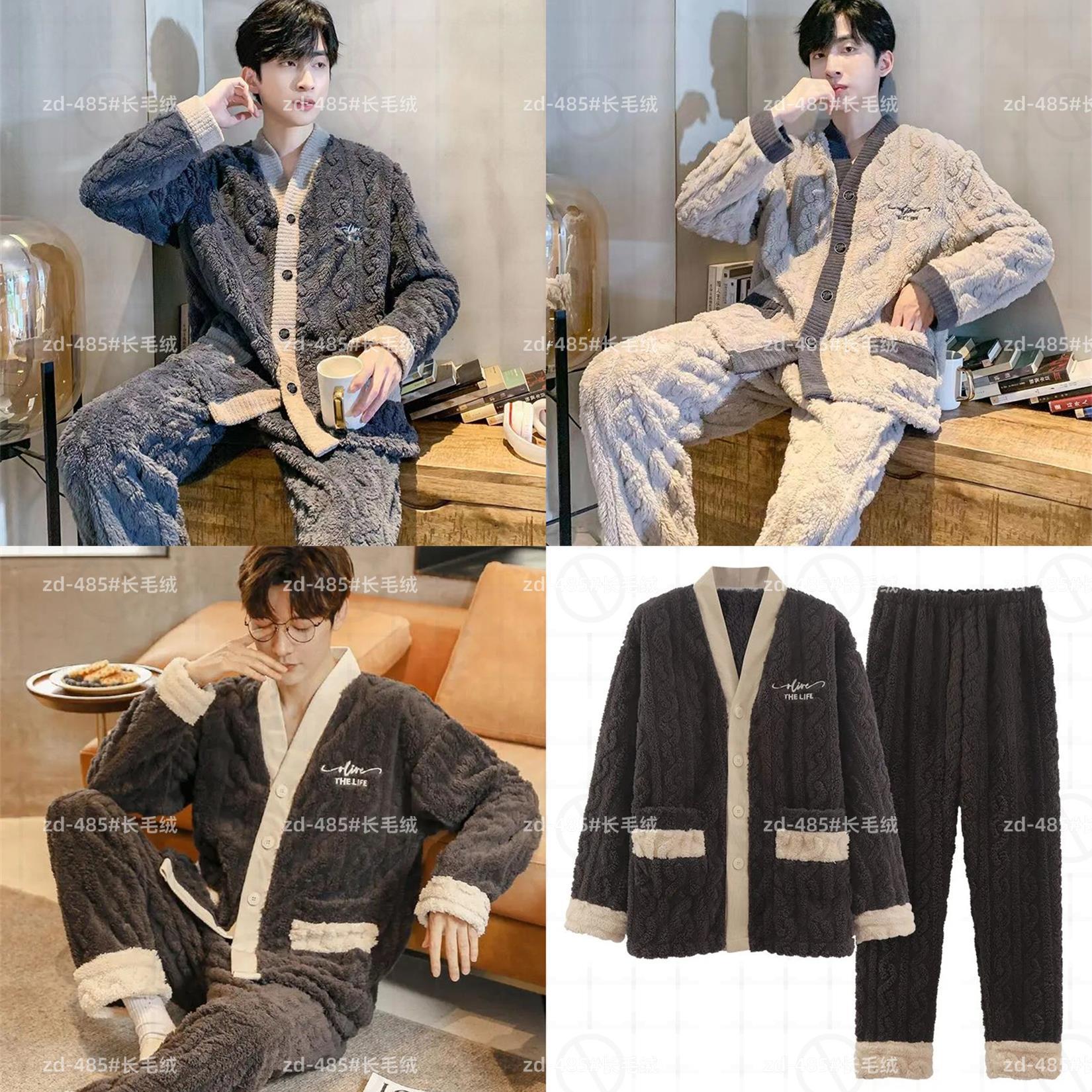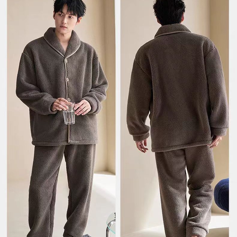 2025 新しいメンズパジャマラムベルベットプラスベルベット厚く暖かいホーム服コーラルベルベットティーンエイジャー学生スーツ
