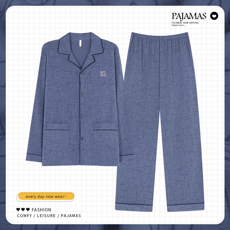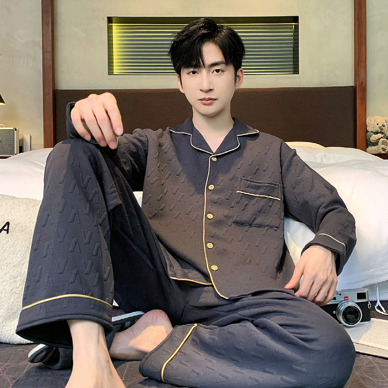 外国貿易クロスボーダー男性パジャマ春秋タイプ長袖スーツカジュアル新型ゆったり大きいホームウェア外着可