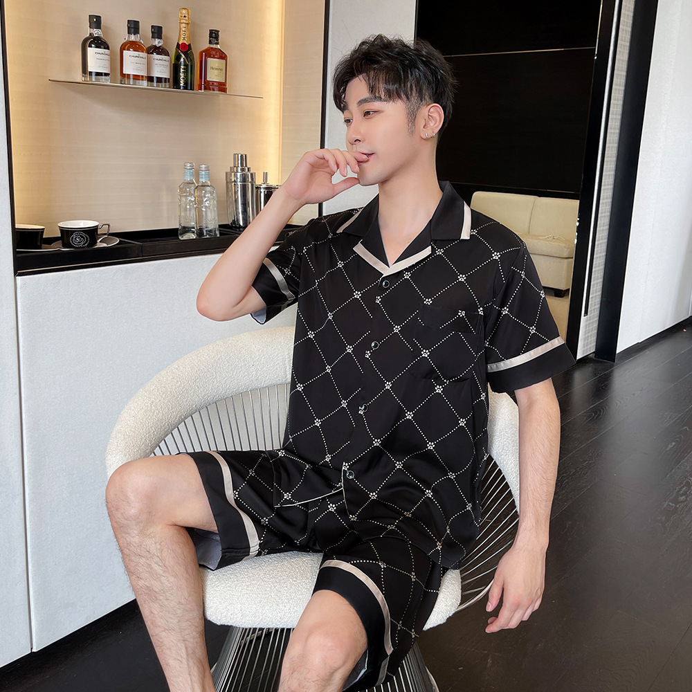 肥人大サイズ300斤男性パジャマ氷シルク半袖夏氷シルクファッションシミュレーション糸ホーム服セット
