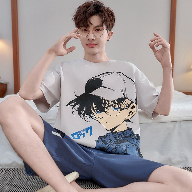 青少年純綿パジャマ男性用夏半袖2025新型男性夏アニメ大サイズ家庭服セット