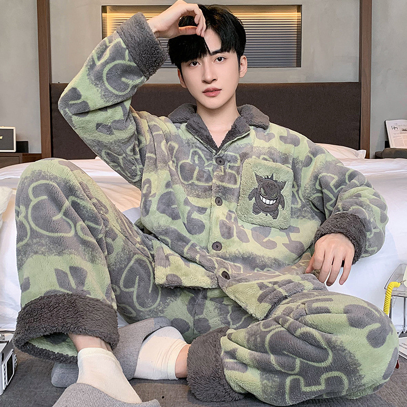 パジャマ男性コーラルベルベット冬ベルベット厚手保温高校学生青少年フランネル家庭服少年