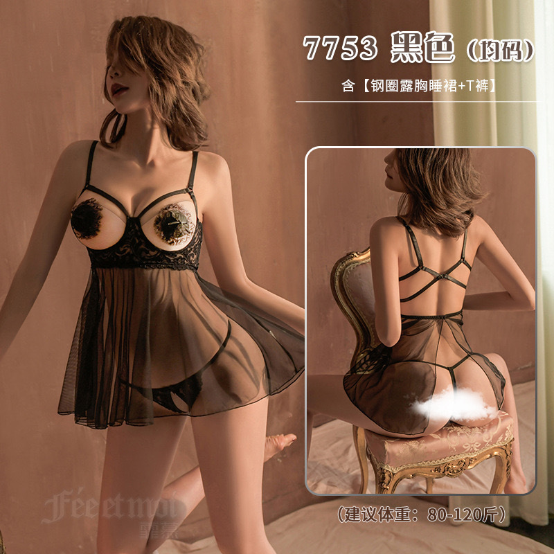 金宵のセクシーな下着の透明な誘惑の網の糸のパジャマの調子は胸の制服のレースの激情の熱いスーツを透視します。