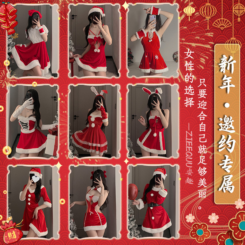 セクシーなクリスマスバニーガールコスチューム、魅惑的な新年の衣装、新年の戦闘服、ショートローブ