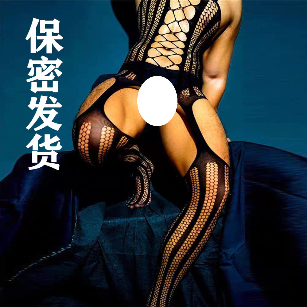 クロスボーダーヨーロッパとアメリカの男性用セクシーランジェリー、オープンジャンプスーツ、男性用Mネットスーツ、男性用GAY中空網タイツ、ドロップシッピング