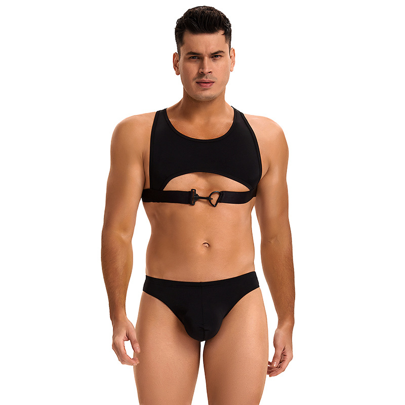 アマゾン速売通猛男風情制服セット新型黒氷糸ストラップセクシー男下着2点セット