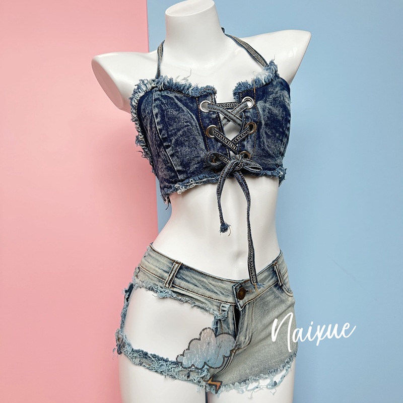 ドーミーラセクシーなセクシーなセクシーな下着のデニムの上着のショートパンツの女性は大きいサイズをプラスして野外で彼氏を露出することを免れます。