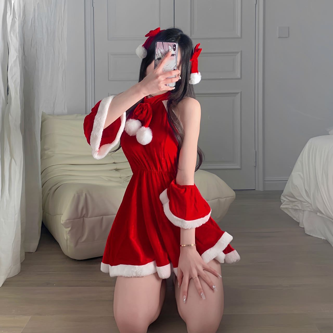 複数の趣味のベルベットのクリスマスのチャイナドレスのセクシーな誘惑のバニーガールの役はネットの赤い女性の新年の軍服のスーツを演じます。