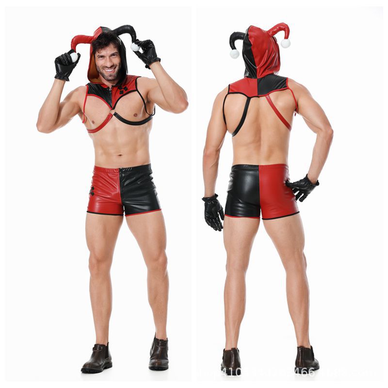 欧米のセクシーな制服のセクシーな役はベストのショートパンツの漆の皮のgayのセクシーな男性の舞台の演技服を演じます。