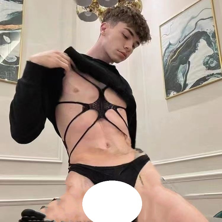 クロスボーダーメンズセクシーランジェリー中空セクシーメッシュオープンジャンプスーツゲイ男性ゲイ挑発シャツ