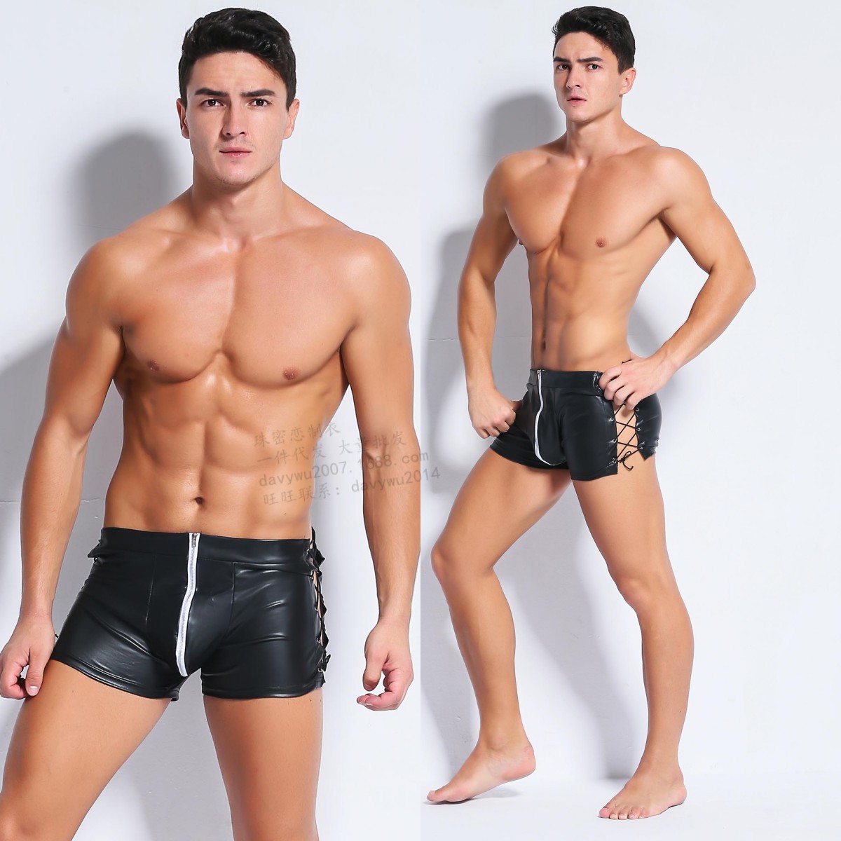 現物の外国貿易の商品の供給源欧米の情緒の下着のセクシーな男性のタイトな股の皮の半ズボンのシミュレーションの皮のズボン