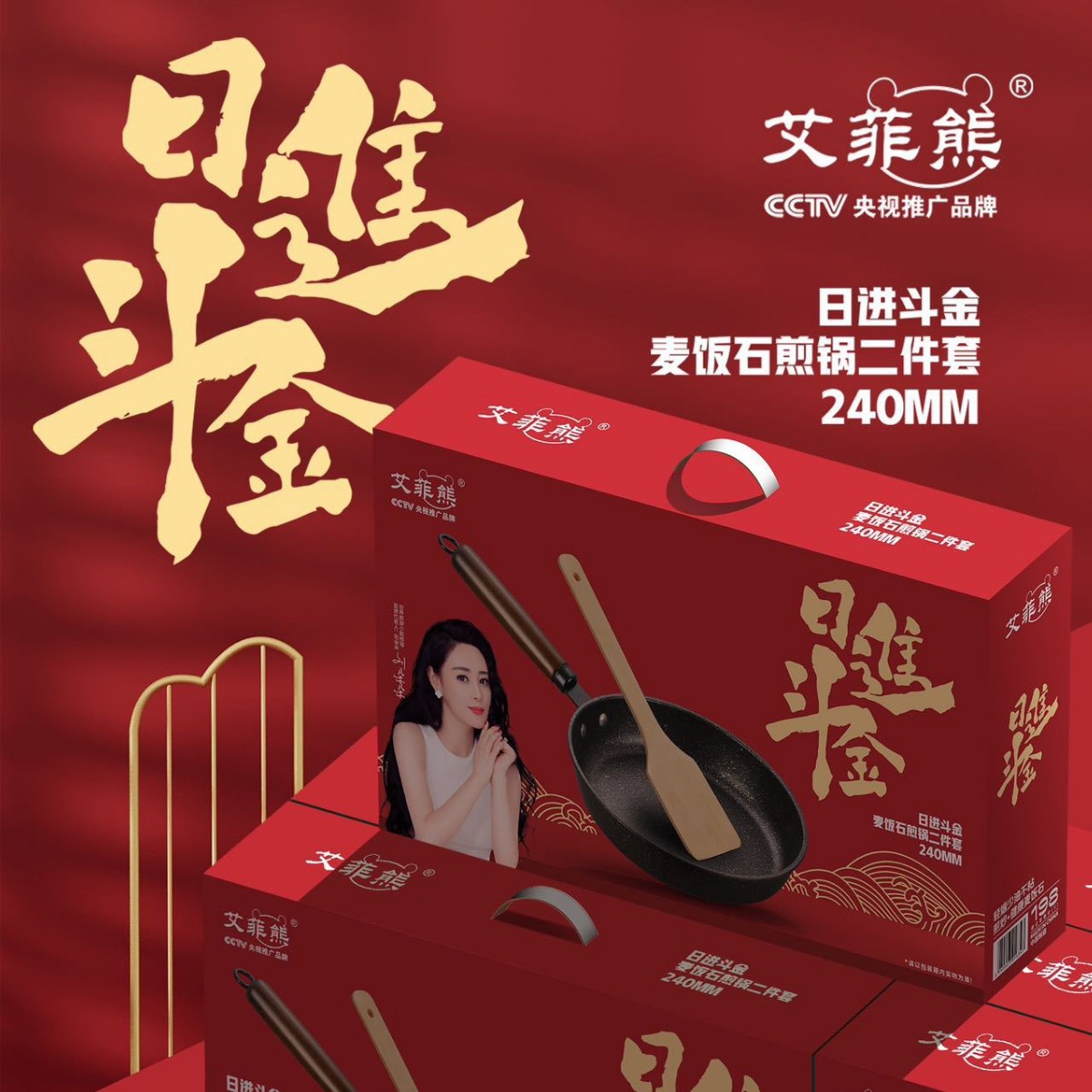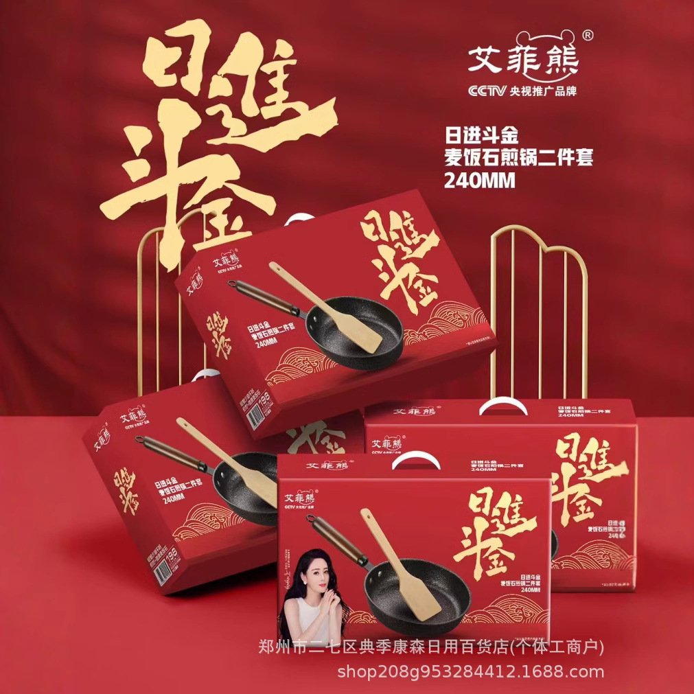 アフィー熊. 日進闘金麦飯石フライパン2点セット中国紅礼箱包装
