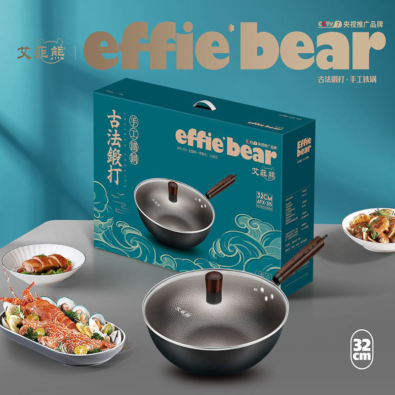 卸売りの艾菲熊は手で鍛えて厚くして、鍋の少ない油煙の家庭は古法鉄鍋の贈り物にくっつかない