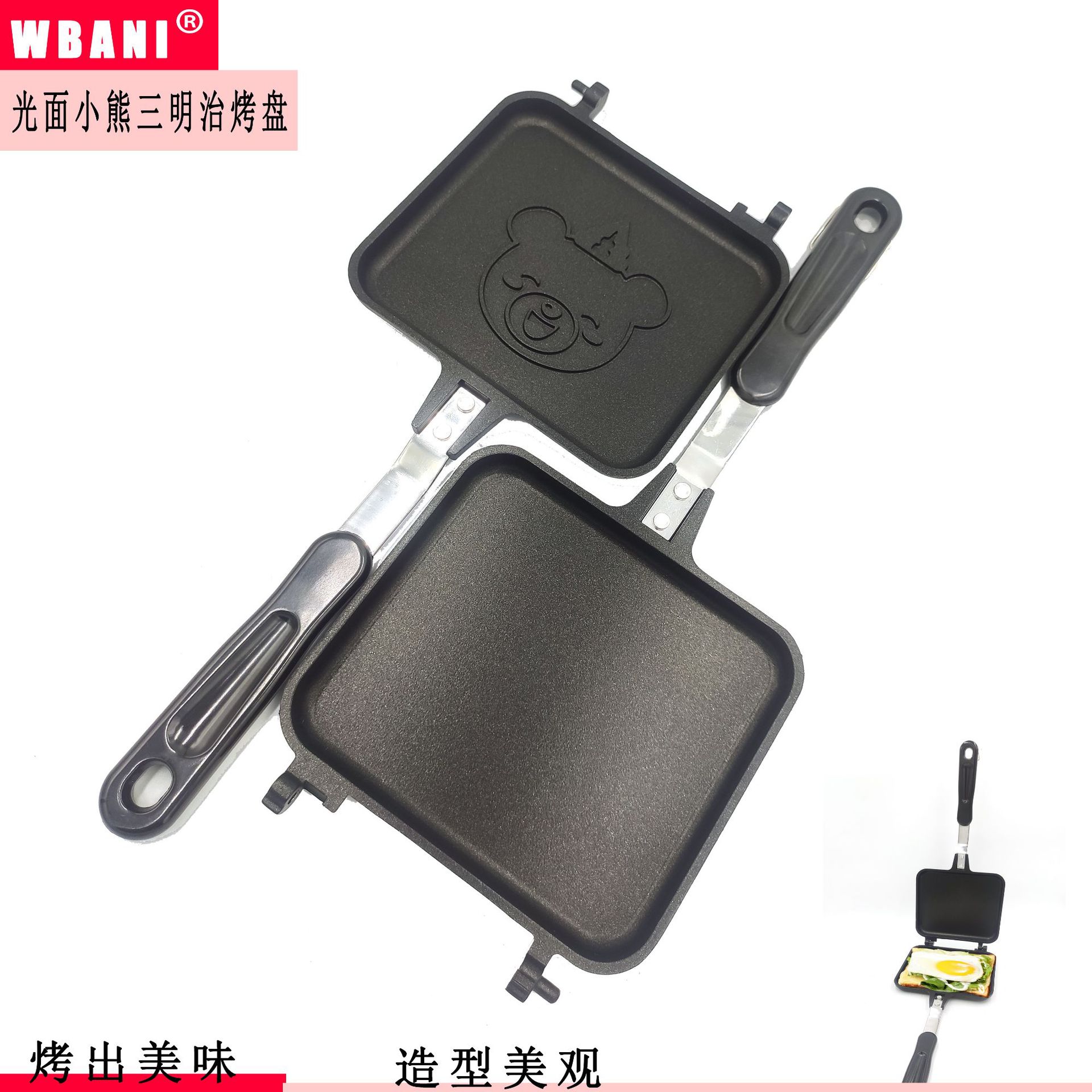 新しい光沢のある熊はサンドイッチ焼き皿の両面の四角いトーストパンのフライパンの朝食フライパンのクロスボーダーを取り外します。