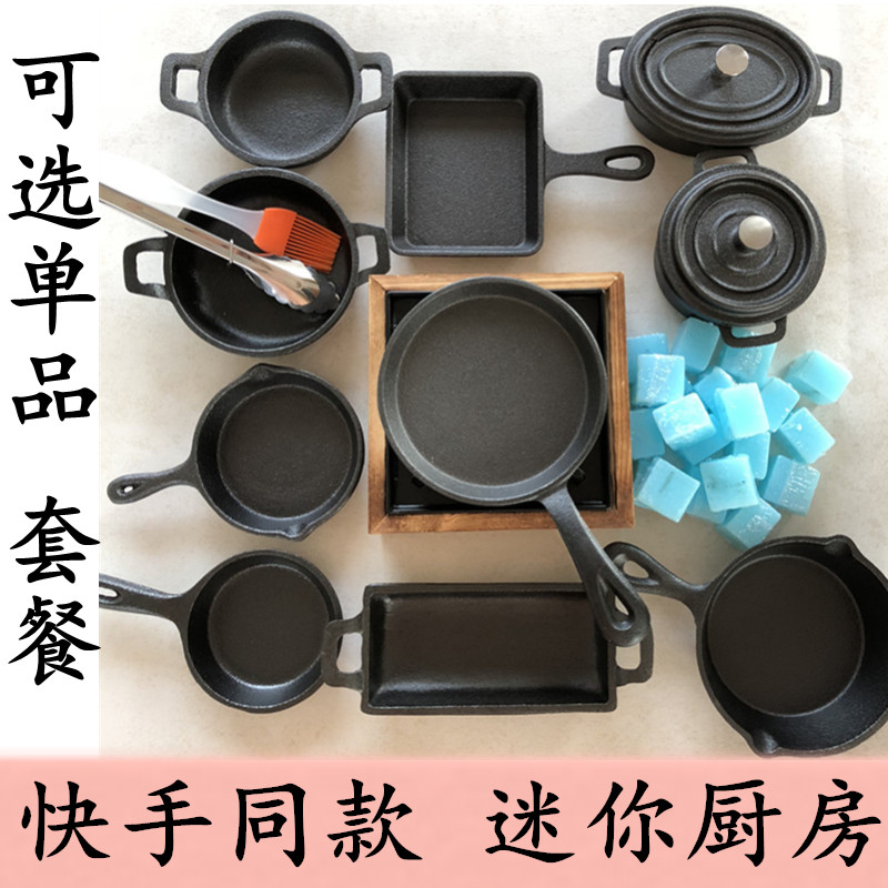 ミニキッチンセット、本物の料理、ミニチュアキッチン用品、フライパン、コーティングなし、3種類、送料無料