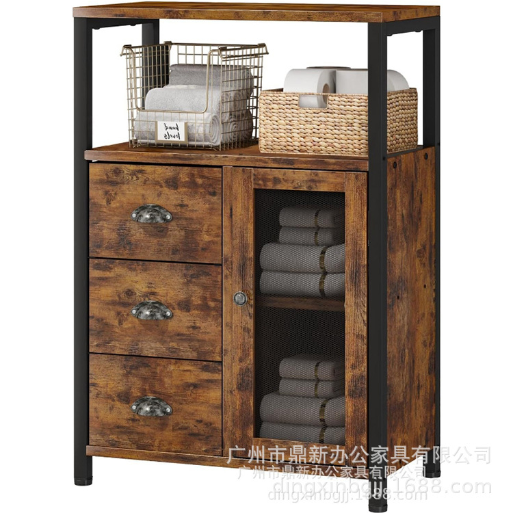 取り外し可能な引き出し3つとドア1つを備えたバスルームの床収納キャビネット収納ボックスは、組み立てが簡単です。