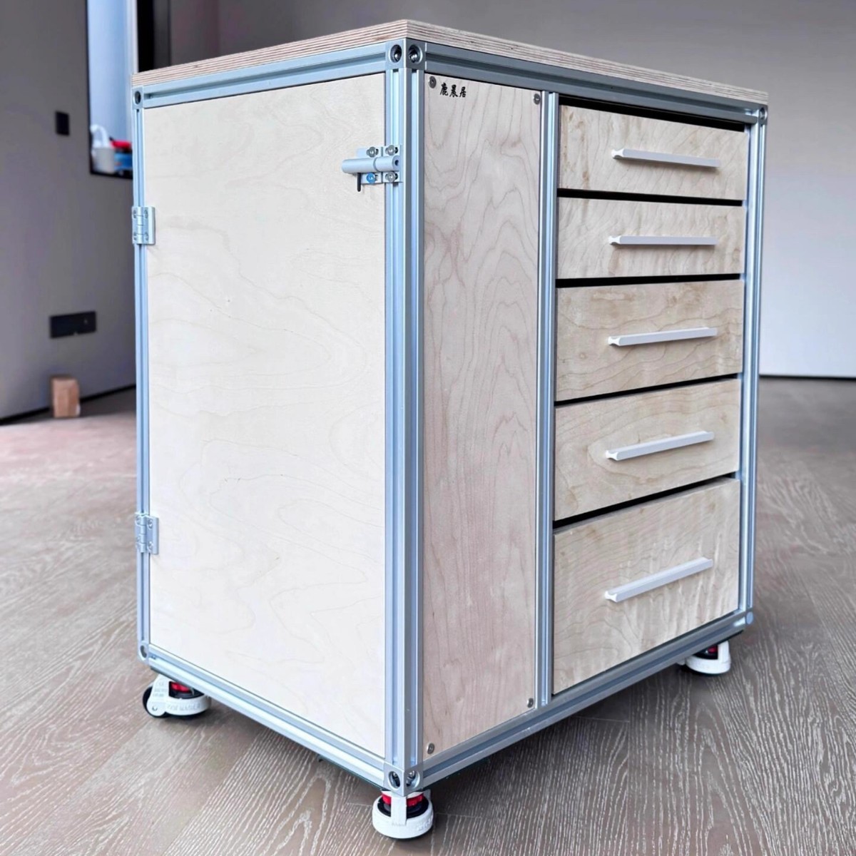 バーチオーシャンボードアルミプロファイルサイドボード引き出し型収納キャビネット収納キャビネット可動トロリー収納ラック