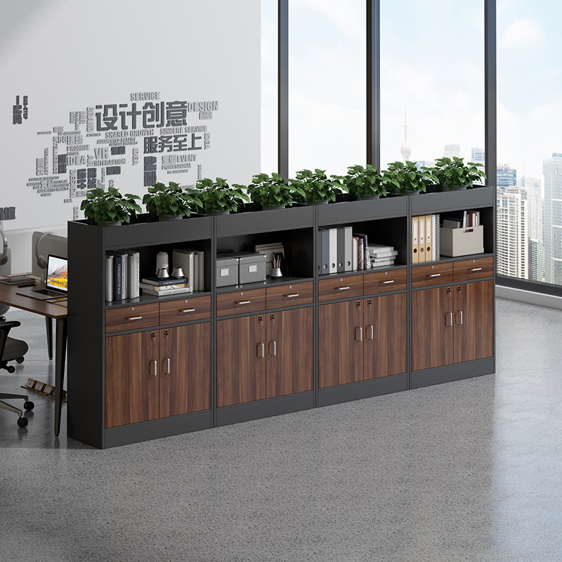 事務室の書類棚の机の下の収納棚の事務棚の置物のサイドキャビネットの引き出し棚の木製の鍵付きの低いキャビネットのロッカー