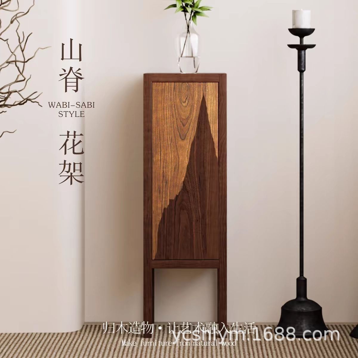 リッジフラワースタンド無垢材リビングルーム収納キャビネット古いニレ材収納キャビネット収納ディスプレイキャビネットB&Bティールームアート装飾