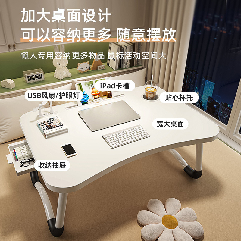 ✅ベッドの上の小さなテーブルは折りたたみ可能です。ノートパソコンのデスクは怠け者です。