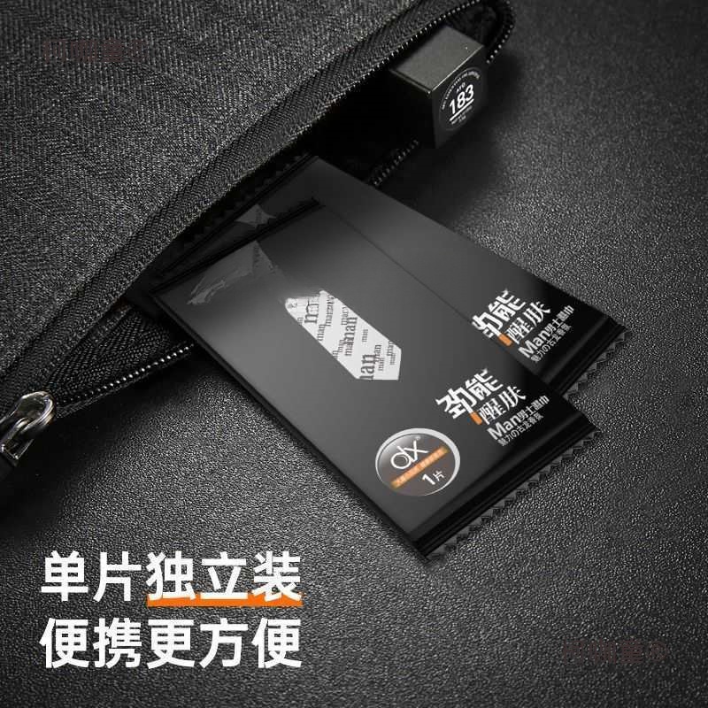 男性の力は肌を覚ますことができます。ウェットティッシュは顔を拭いて汗を拭きます。