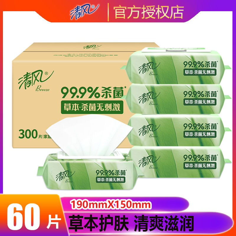 清風草本ウェットティッシュ殺菌衛生消毒ウェットティッシュ女性男性60枚5大バッグウェットティッシュ家庭用