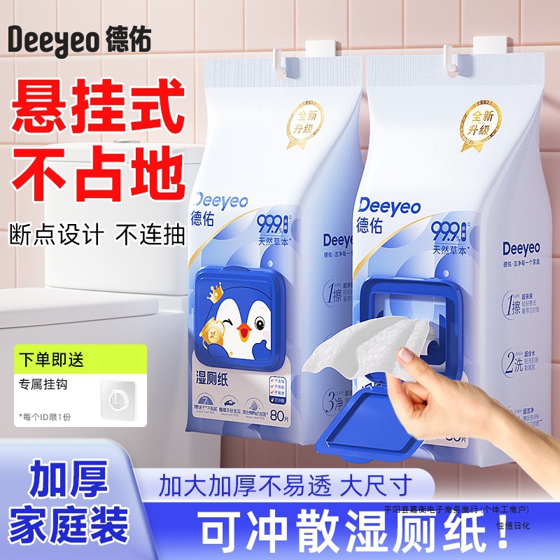 Deyou 吊り下げウェットトイレットペーパー 80 パック ファミリーパック トイレ掃除用ウェットティッシュ 男女兼用 除菌お尻拭きウェットティッシュ