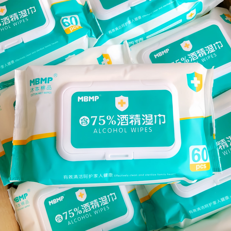 ムベン綿製品 アルコールウェットティッシュ 75%アルコールウェットティッシュ 消毒ウェットティッシュ 抽出式60枚 学生旅行携帯用