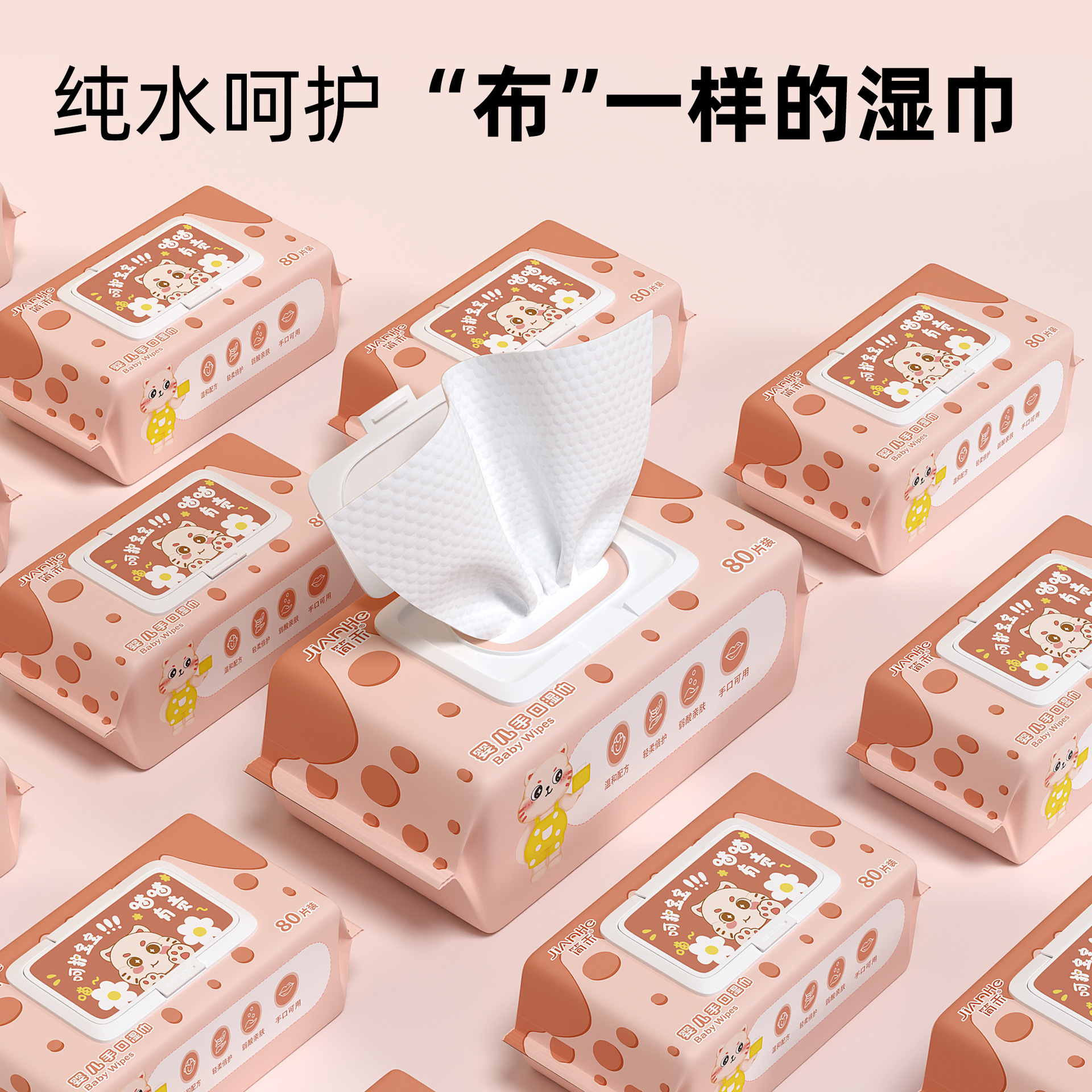 维达湿巾纯水洁肤湿巾家用80片盖抽取式湿纸巾VW1027无酒精不刺激