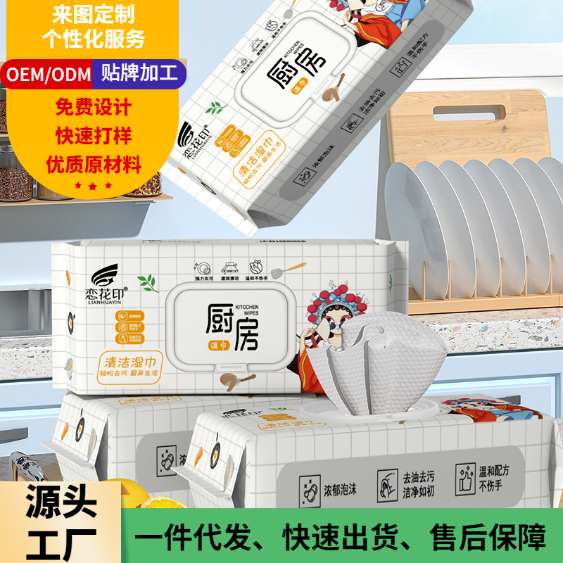 家庭用バッグを厚くして80サイズの台所のウェットティッシュ卸売りレンジフードの使い捨て清潔なウェットティッシュ卸売りをする