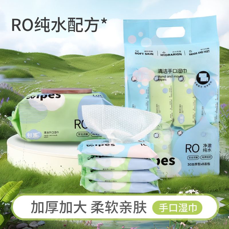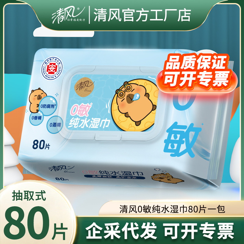清风湿巾0敏纯水80片大包家用手口清洁湿纸巾家庭装母婴 纯水湿巾