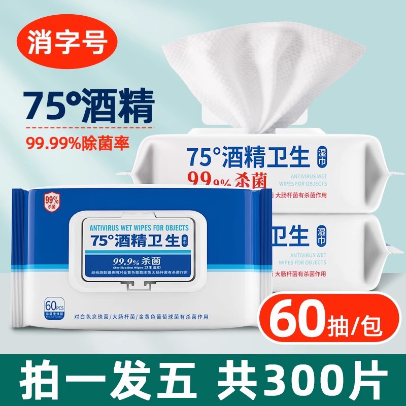 アルコールウェットティッシュ75 ° 度オフィス家庭用バッグ消毒消毒厚手清潔綿片ポータブル抽出式60抽出