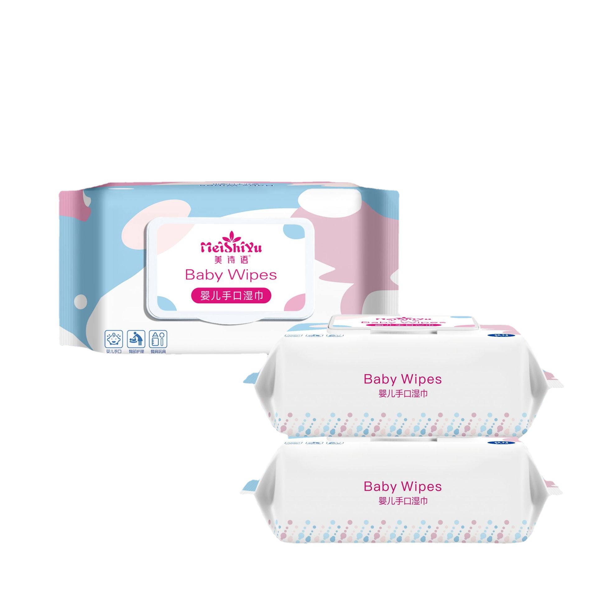 美詩語80は厚い真珠の紋様の赤ちゃんの手の口のウェットティッシュの工場を引き出して赤ちゃんの子供の清潔なウェットティッシュの紙を卸売りします。