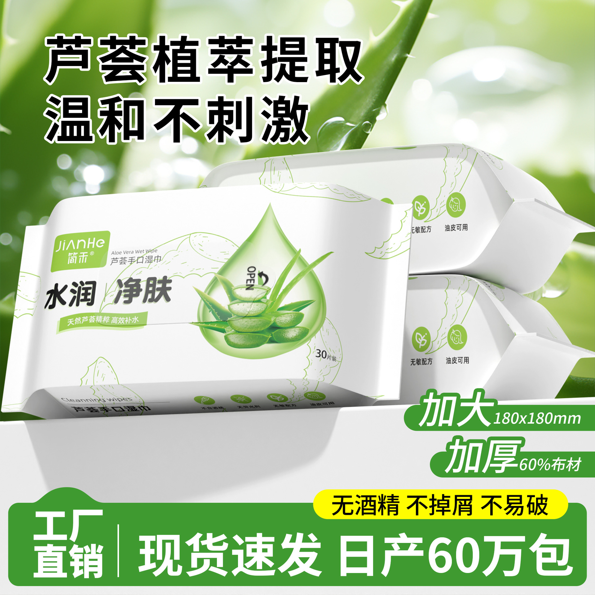アロエベラクレンジングウェットティッシュ、爽快で香りの良いウェットティッシュ、大容量、厚手、携帯用ウェットティッシュ、衛生ウェットティッシュ、卸売