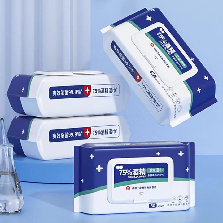 75 度英語アルコールワイプ大パック家庭用滅菌ウェットワイプ使い捨てポータブルクリーニングワイプメーカー卸売