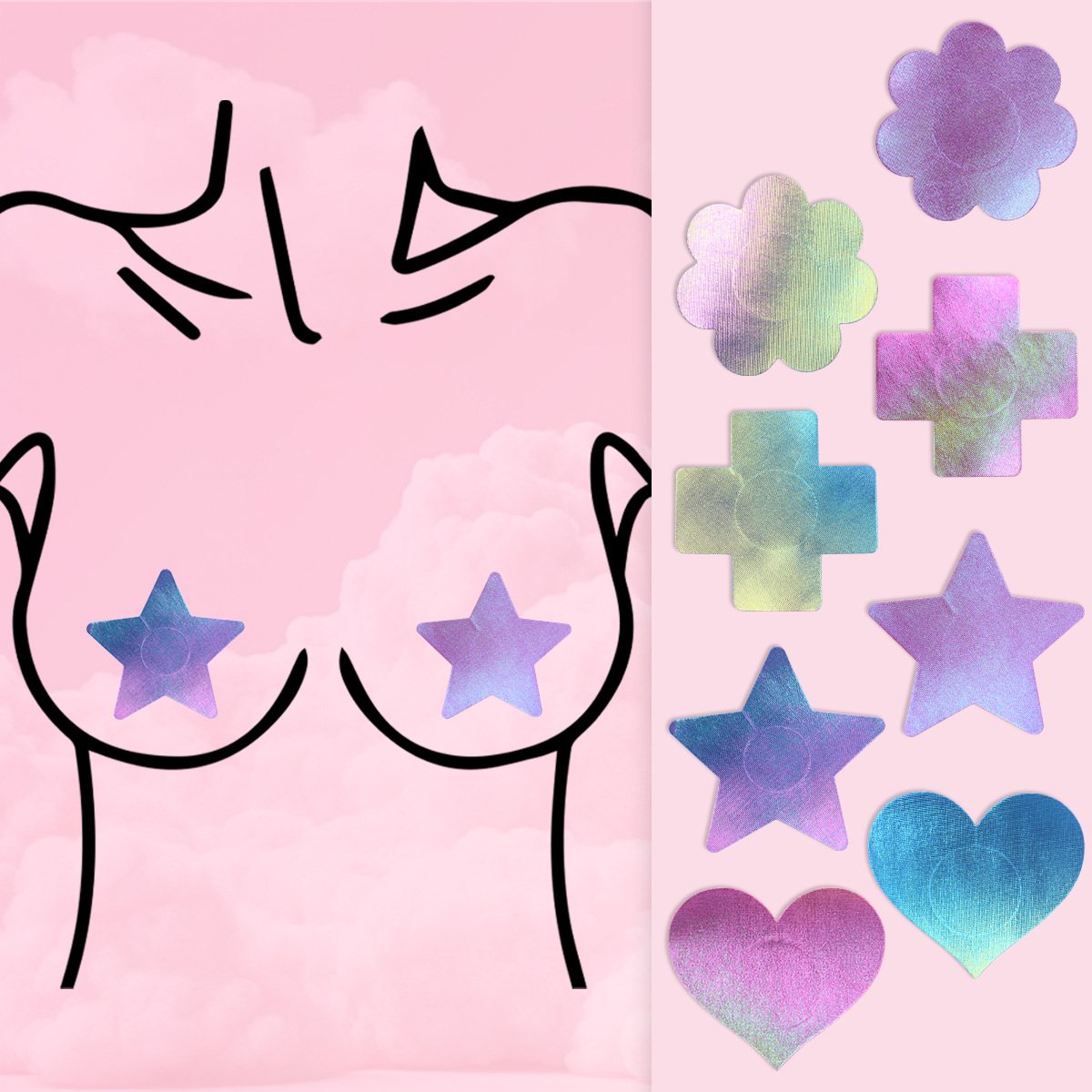 速卖通カスタムレーザーグラデーションカラーブレストパッチ、おしゃれな胸パッド、突起防止、通気性のある十字型乳パッド、使い捨て