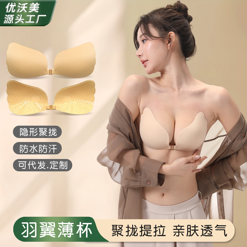 大きな胸のウェディングドレス用の目に見えない胸パッチ、特別なプッシュアップシリコン巾着胸パッチ、ウィングプルアップシリコン胸パッチ卸売