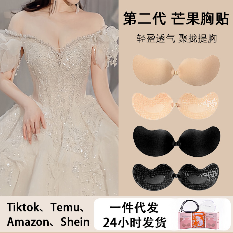 マンゴーの胸にシリコンの胸を貼って、女性のウェディングドレスの写真を撮って、専用の乳を貼って、見えないブラジャーの夏の薄い金を集めます。