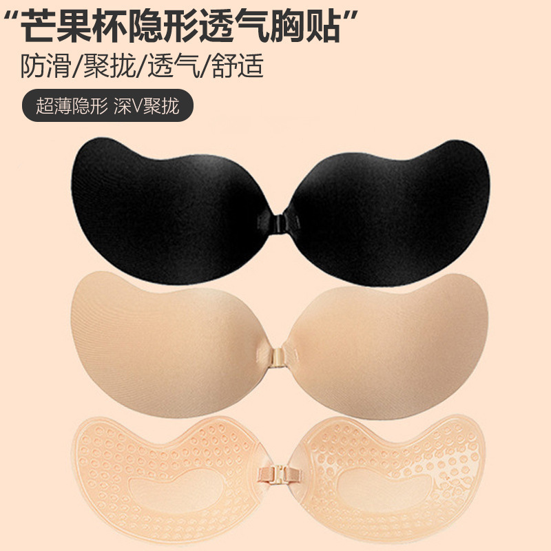 マンゴー型ストラップレスシリコン通気性ブラパッド、セクシーな女性用小胸美胸プッシュアップブラ、露出防止下着
