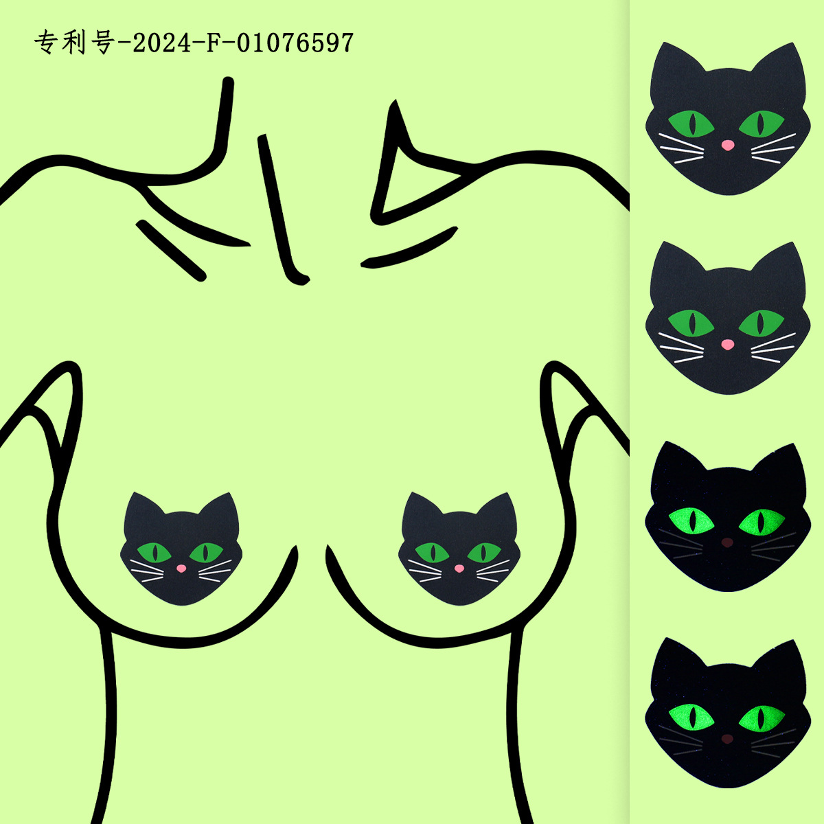 現物卸売り趣味使い捨て乳貼り黒猫ステルス通気生地猫女夜光胸貼り