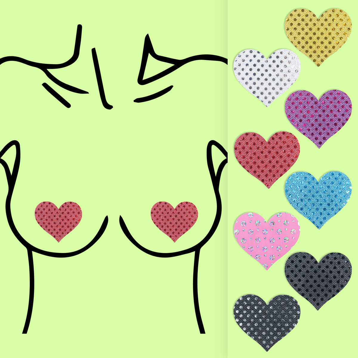 使い捨ての乳輪は通気性の赤いセクシーなスパンコールのハート型のステルスの防凸点の胸を貼ります。