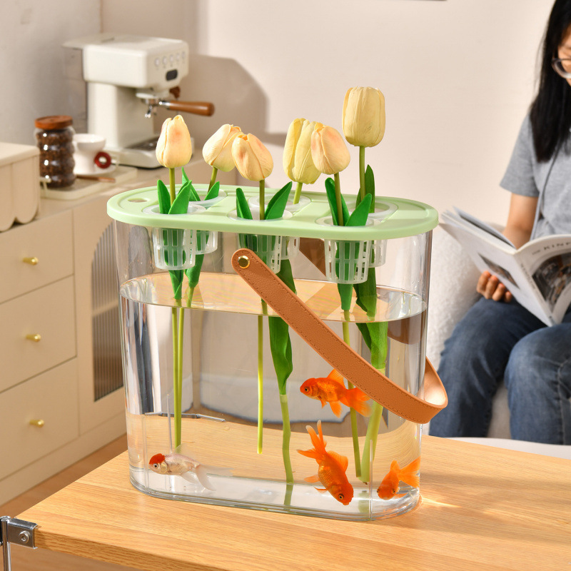 小さな水槽は透明でシンプルで、プラスチックの耐摩耗性水槽は多くのデザインの小型デスクトップの水培金水槽に耐えられます。